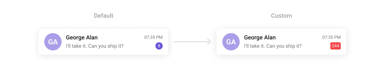 TheCometChatBadge Component displays notifications or counts, such as unread messages. It can be styled for background colors, border radius, text size, and colors, allowing you to create visually distinct indicators for different notifications.