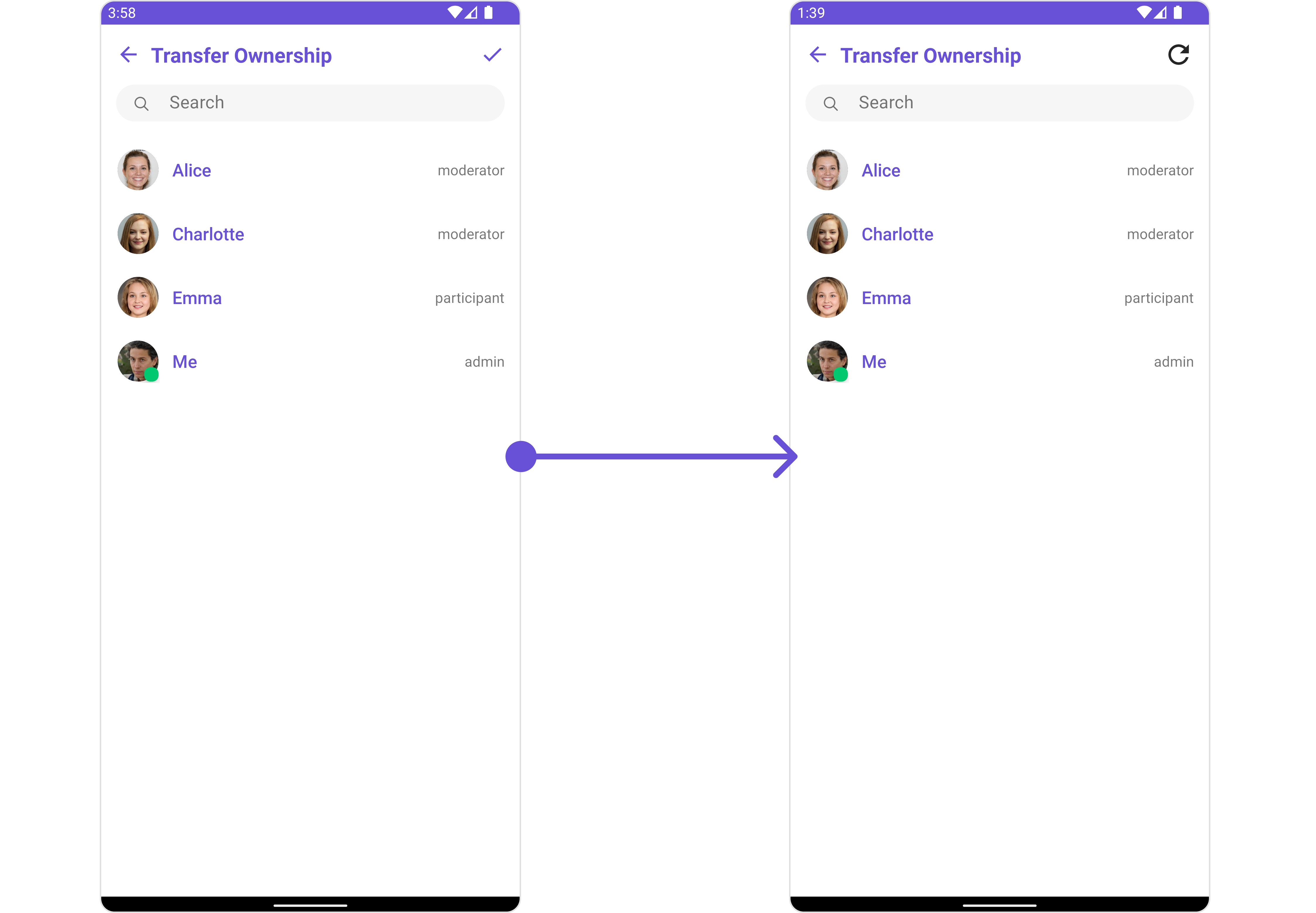 To fit your app’s design requirements, you can customize the appearance of the Transfer Ownership component. We provide exposed methods that allow you to modify the experience and behavior according to your specific needs.Style